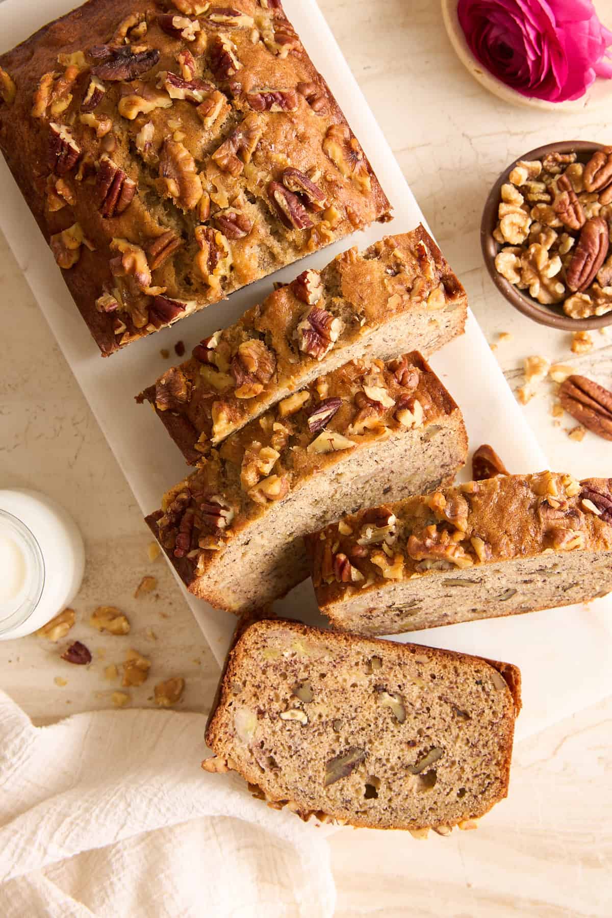 - Raw Walnuts – Walnuts add earthy flavor and extra bite throughout the loaf. Using a mix of nuts creates a more interesting texture in every slice.