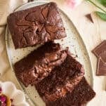 Pour batter into a 9x5 loaf pan and top with more extra chocolate chunks, optional.