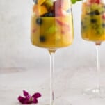 Scoop approximately 3/4 cup of the fruit mixture into each 6-8 oz stem glass or cup.