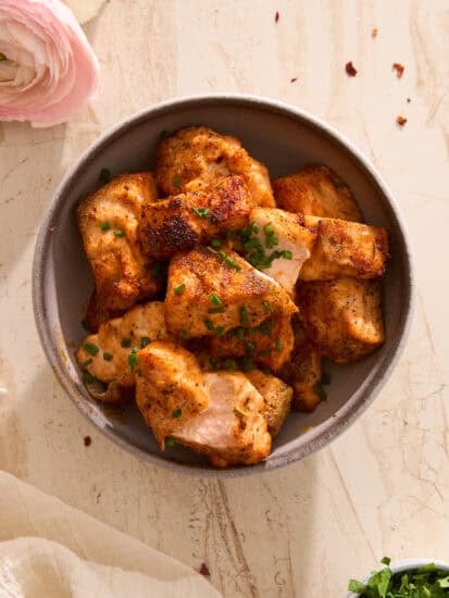 Grease the basket, and arrange the chicken and potatoes in a single layer. Work in batches as needed! Air fry for about 30 minutes or until the chicken cooks through and the potatoes are tender.