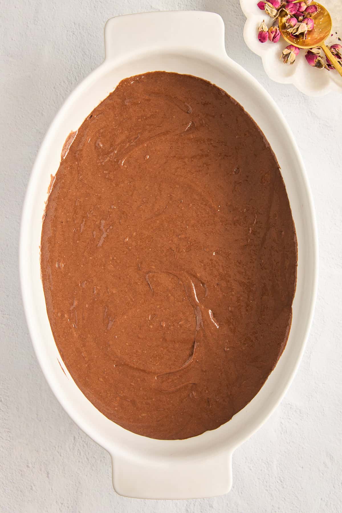 - Prepare the cake according to package instructions. In a 11×7 oval baking dish or a 13×9 pan.1 (14.25 ounce) box cake mix (prepared per package instructions)*